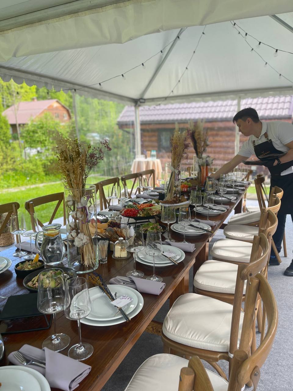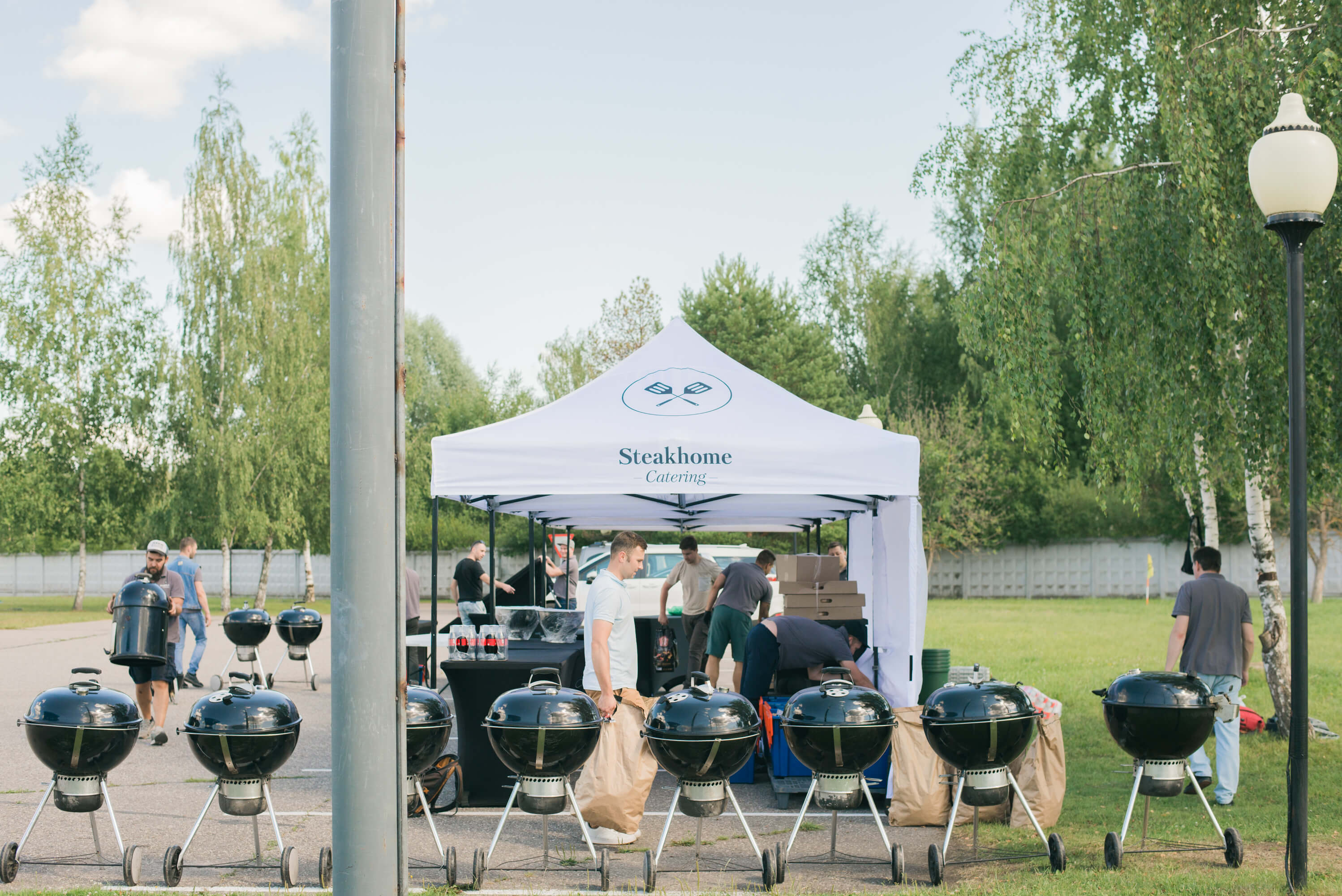 Все нужное оборудование: шатер для персонала, грили, столы.
